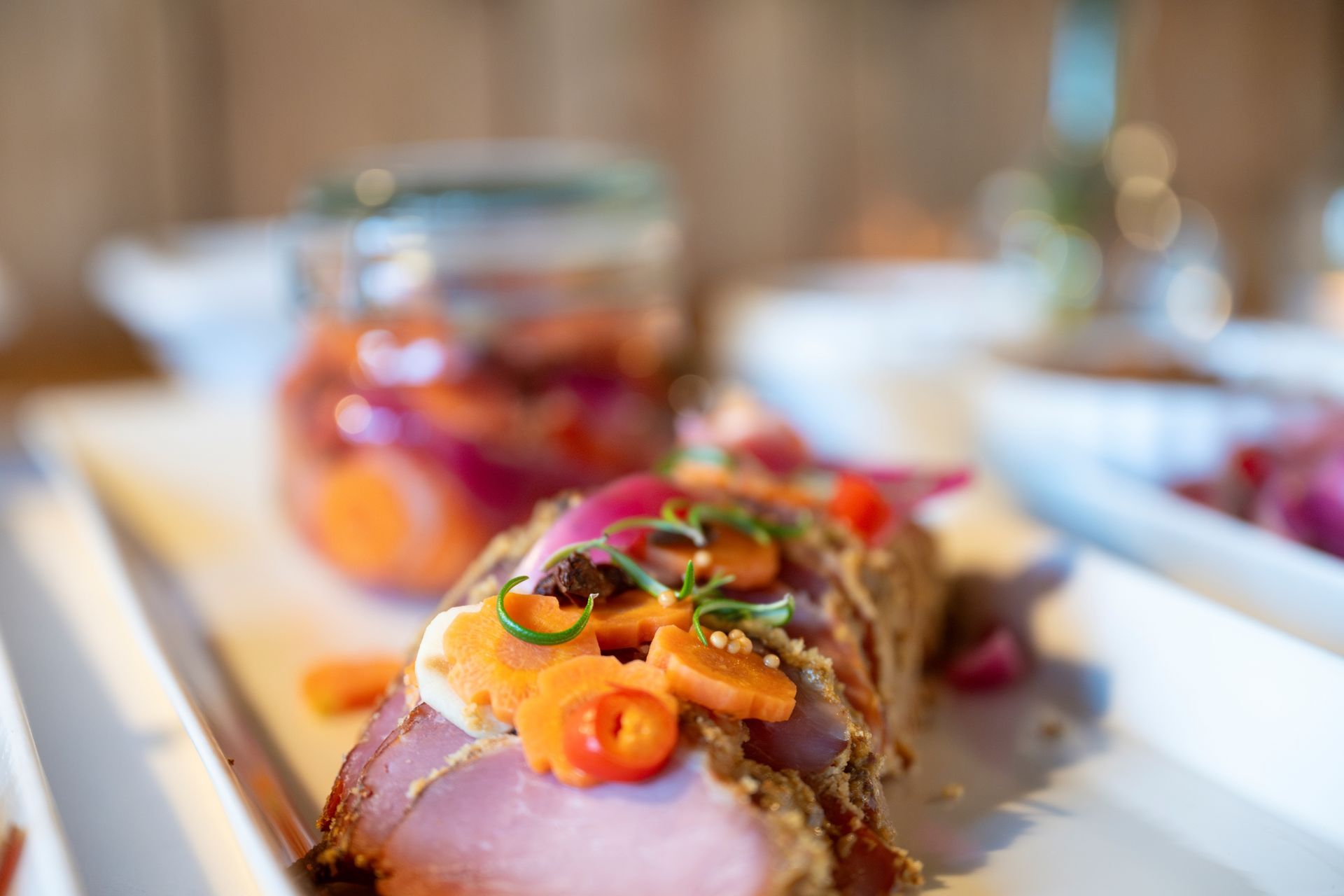 Utforsk menyene våre og finn inspirasjon til ditt neste arrangement. Våre kokker henter inspirasjon fra nordiske og franske tradisjoner, alltid med sesongens beste råvarer.